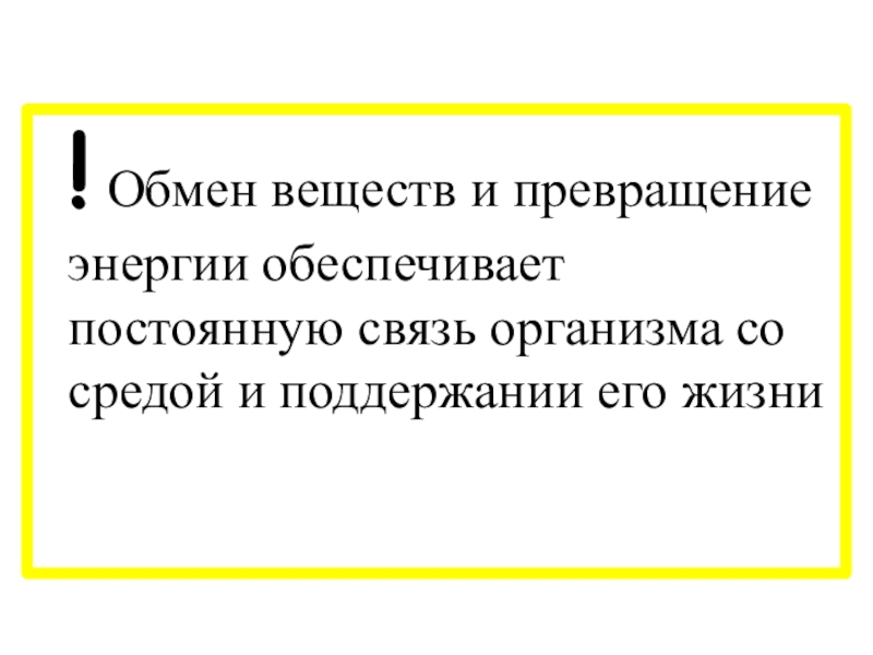 Слайд 9 ! Обмен веществ и превращение энергии обеспечивает постоянную связь организма