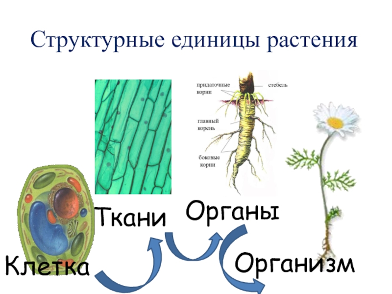 Структурные единицы растенияКлеткаТканиОрганыОрганизм