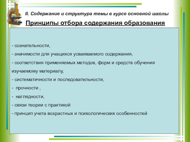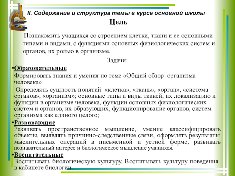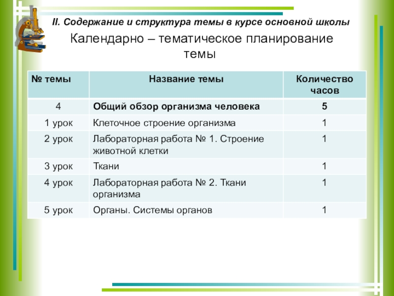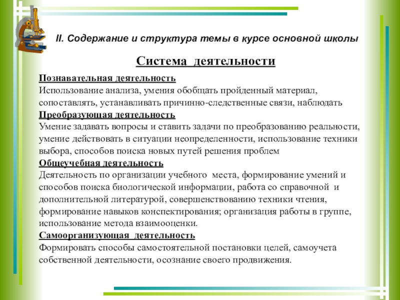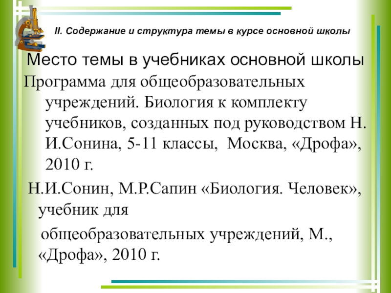 II. Содержание и структура темы в курсе основной школы