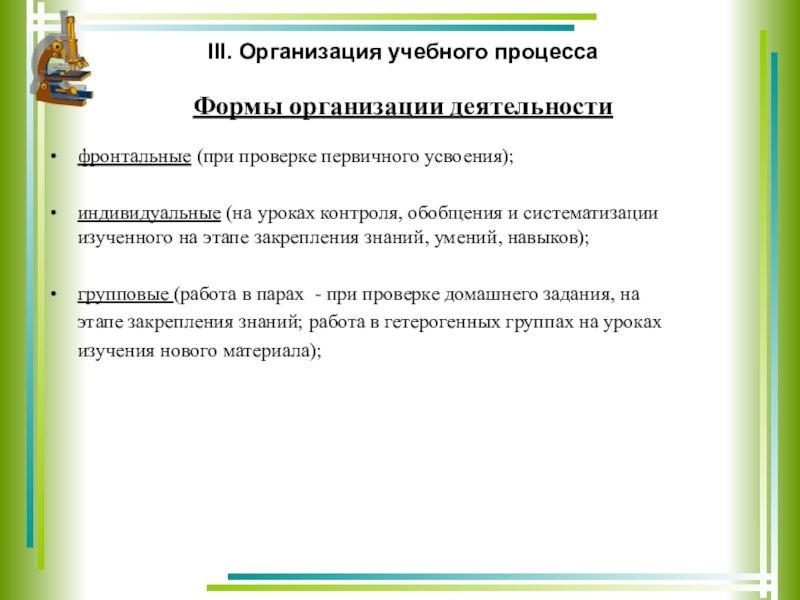 III. Организация учебного процесса