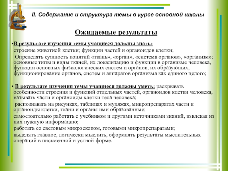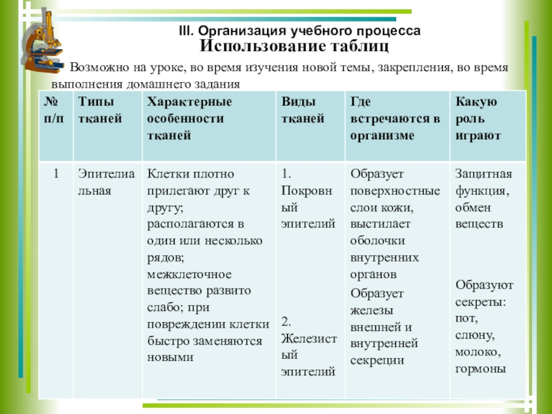 с основными видами тканей животных. В 8 классе учащимся предстоит более подробно освоить знания о строении клетки и её органоидах, тканях и её видах, органов и систем органов. Учащиеся имеют неплохой