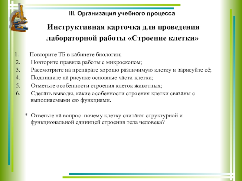 организм» 6 класс учащиеся знакомились со строение животной клетки и