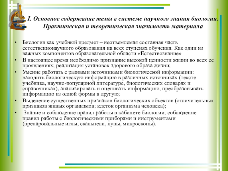 Биология как учебный предмет – неотъемлемая составная часть естественнонаучного образования на всех ступенях обучения. Как один из важных компонентов образовательной области «Естествознание»