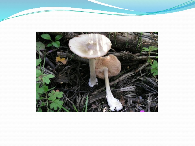 Слайд 3Бледная поганка. Шляпка у молодых грибов полушаровидная (молодую бледную поганку чаще