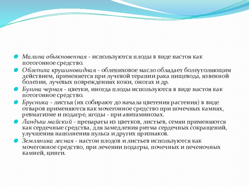 Слайд 19Малина обыкновенная - используются плоды в виде настоя как потогонное средство.