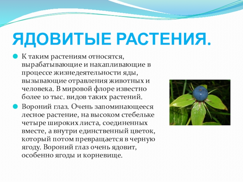 Слайд 8ЯДОВИТЫЕ РАСТЕНИЯ.