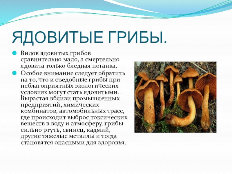 Слайд 2ЯДОВИТЫЕ ГРИБЫ.