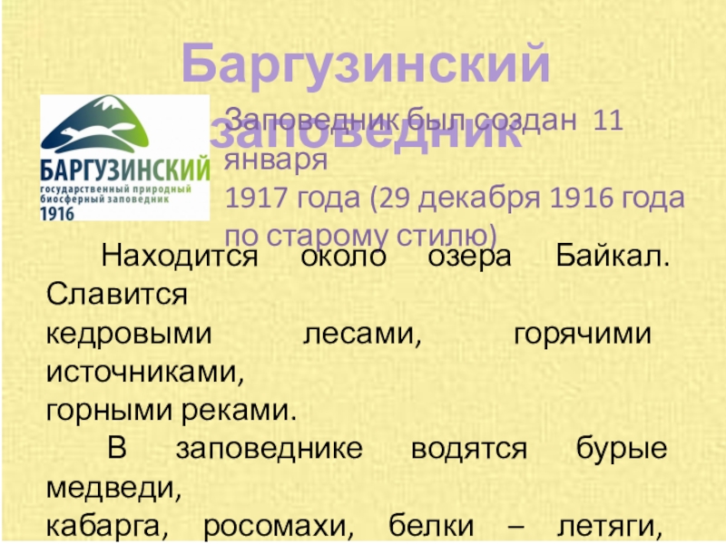 Находится около озера Байкал. Славится