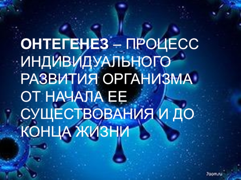 ОНТЕГЕНЕЗ – ПРОЦЕСС ИНДИВИДУАЛЬНОГО РАЗВИТИЯ ОРГАНИЗМА ОТ НАЧАЛА ЕЕ СУЩЕСТВОВАНИЯ И ДО КОНЦА ЖИЗНИ