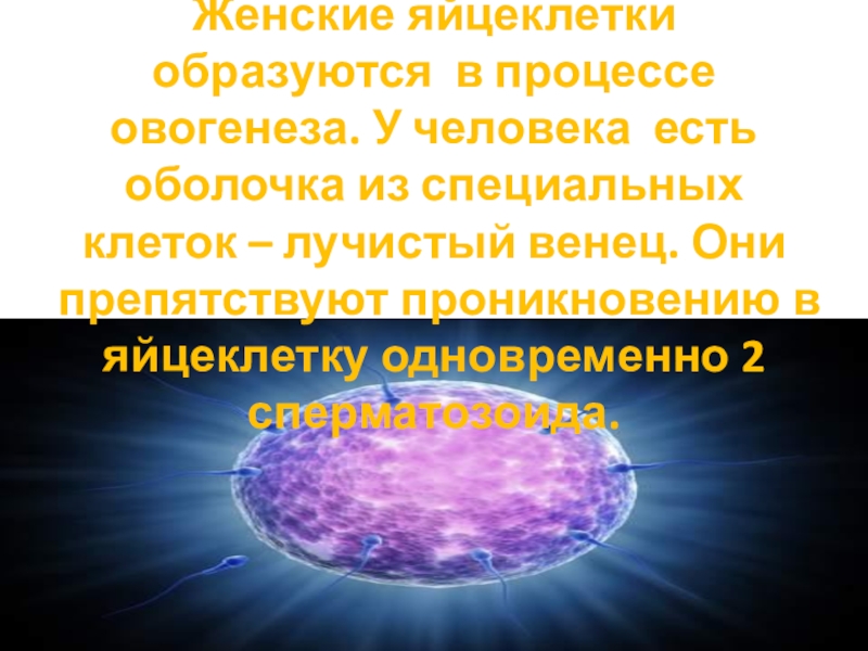 Слайд 11Женские яйцеклетки образуются в процессе овогенеза. У человека есть оболочка из