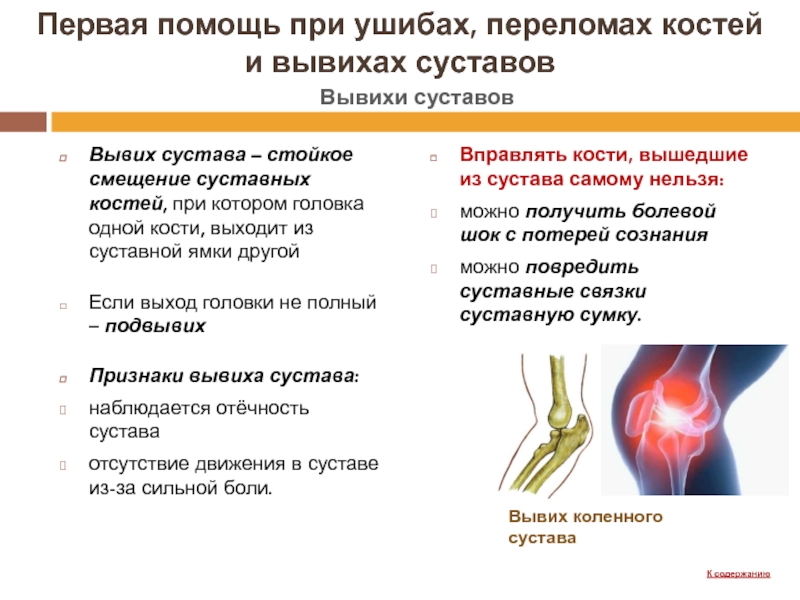 Ушибы Переломы Растяжения связок Вывихи суставов