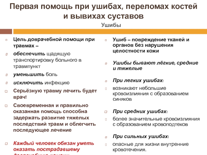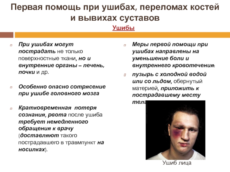 Ушиб – повреждение тканей и органов без нарушения целостности кожи