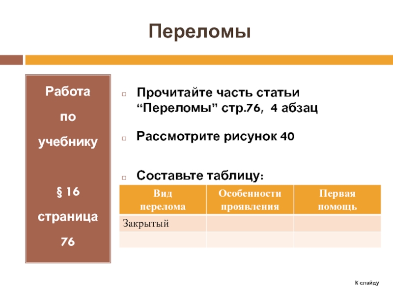 При переломе костей плеча, предплечья и кисти, руку сгибают в локте и помимо шины зафиксировать руку косынкой или полой пиджака