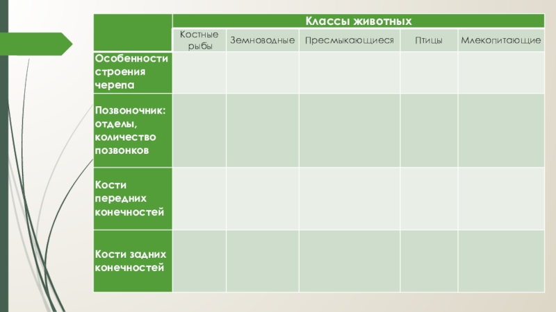 Слайд 6Таблица «Наружный и внутренний скелет»