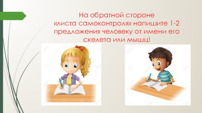 Слайд 16На обратной стороне «листа самоконтроля» напишите 1-2 предложения человеку от имени