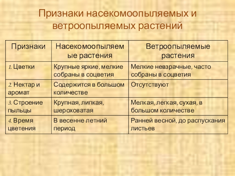 Развивающие: сформировать умения выделять главное, сравнивать, систематизировать особенности насекомоопыляемых и ветроопыляемых растений, продолжить формирование умения работать с учебником.