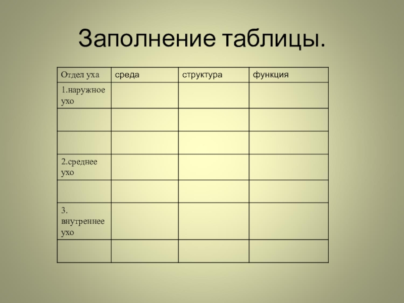Слайд 7Заполнение таблицы.