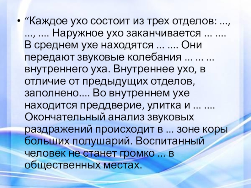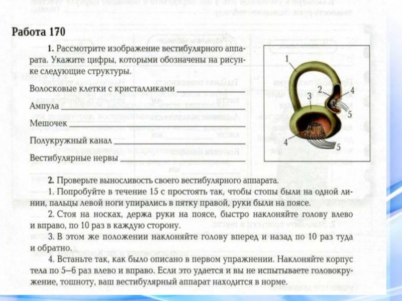 1 орган слуха: улитка с полостью, заполненной жидкостью
