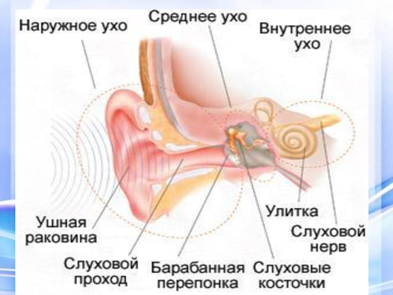 Преобразует воздушные звуковые волны в механические, колеблет слуховые косточки.