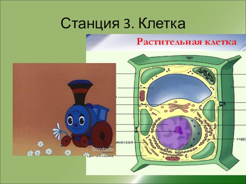 из Ромашково. Этот герой мультфильма очень любит природу. Но он повезёт нас, только если на каждой станции мы будем заправлять его нашими знаниями о живых организмах.
