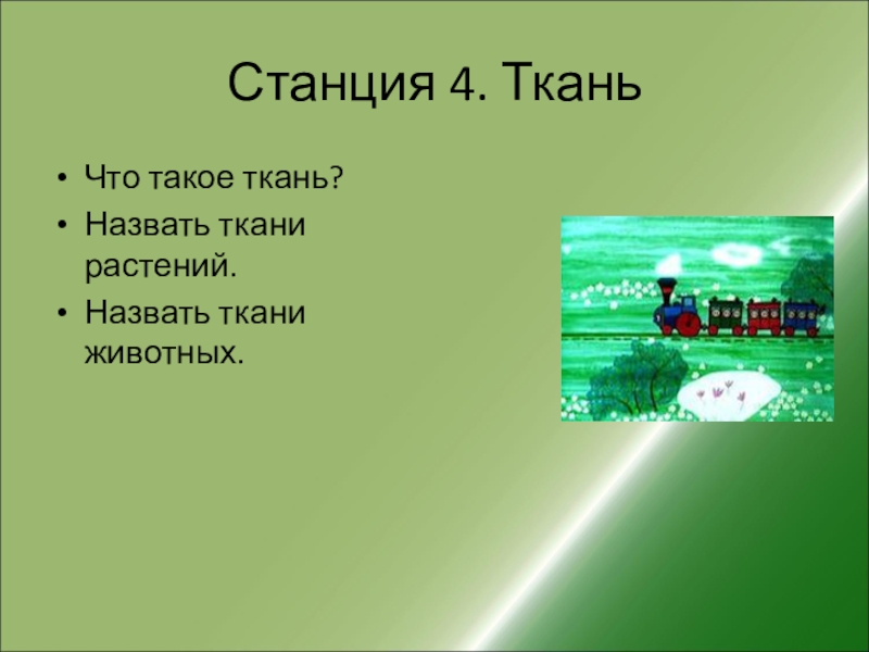 Станция 4. ТканьЧто такое ткань?Назвать ткани растений.Назвать ткани животных.