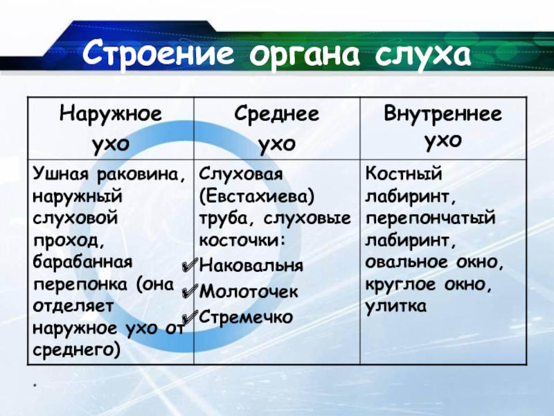*Схема строения органа слуха слуховой проходбарабанная перепонкаслуховые косточки среднего ухаполукружные каналыулиткаевстахиева труба