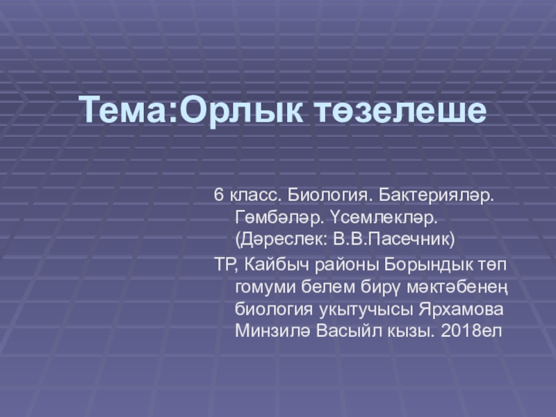 районы Борындык төп гомуми белем бирү мәктәбенең биология укытучысы Ярхамова Минзилә Васыйл кызы. 2018ел