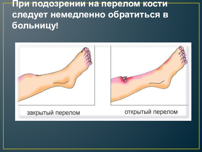 При подозрении на перелом кости следует немедленно обратиться в больницу!