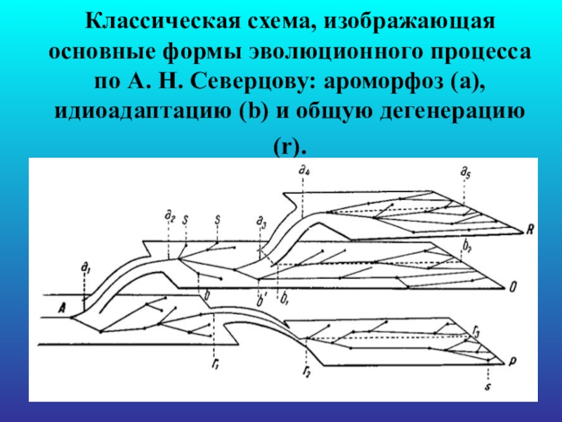 Слайд 25Классическая схема, изображающая основные формы эволюционного процесса по А. Н. Северцову: