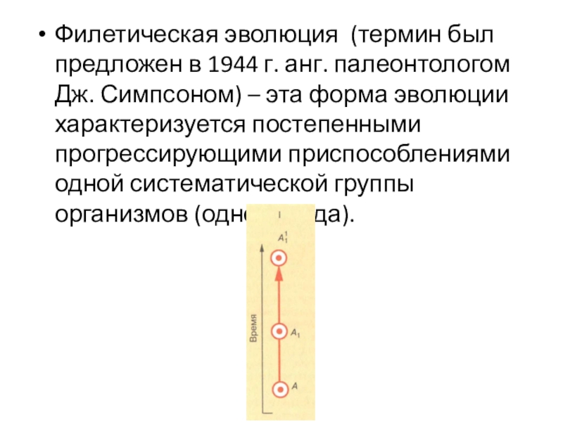 Слайд 19Филетическая эволюция (термин был предложен в 1944 г. анг. палеонтологом Дж.