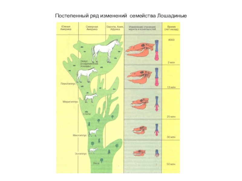 Слайд 21Постепенный ряд изменений семейства Лошадиные