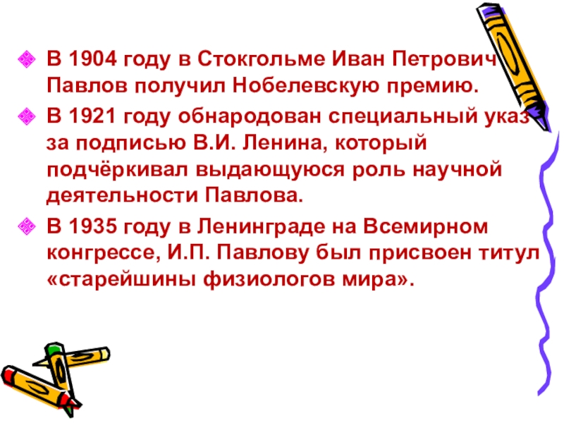 Слайд 9В 1904 году в Стокгольме Иван Петрович Павлов получил Нобелевскую премию.