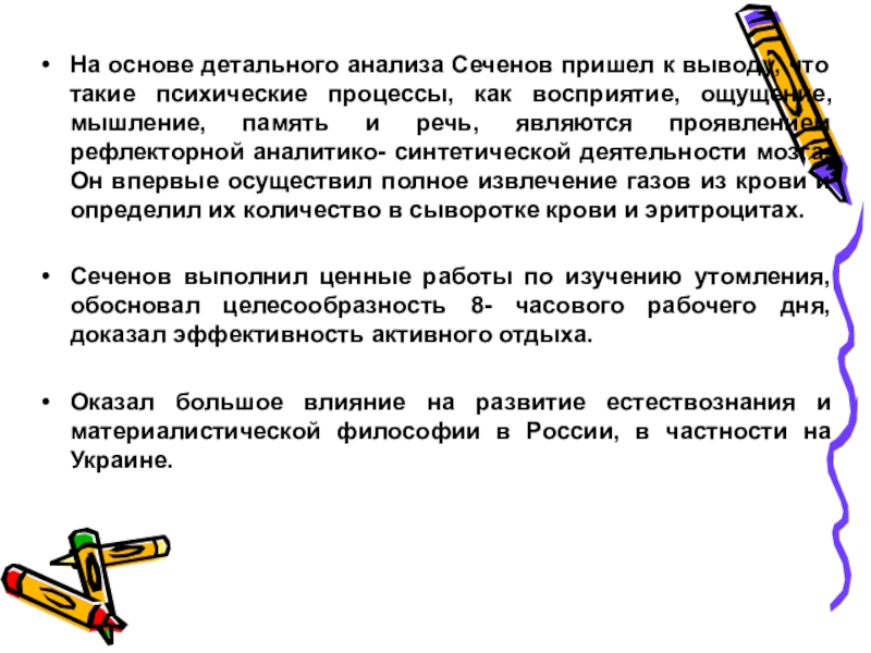 Слайд 5На основе детального анализа Сеченов пришел к выводу, что такие психические