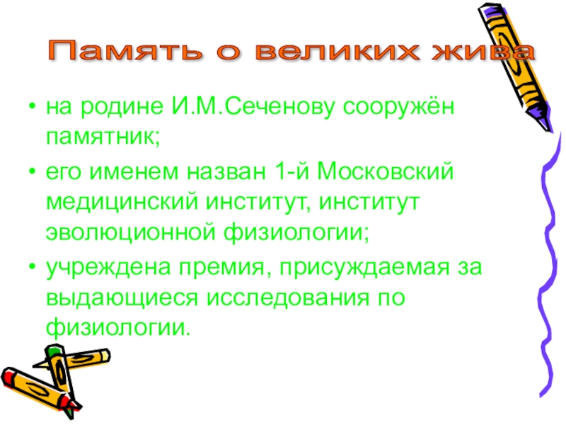 Слайд 8на родине И.М.Сеченову сооружён памятник;