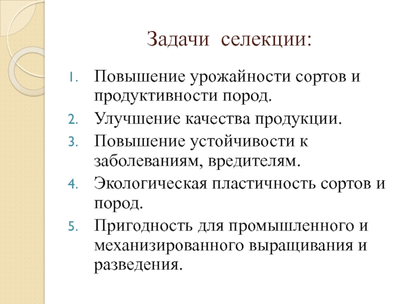 Формирование задач современной селекции.