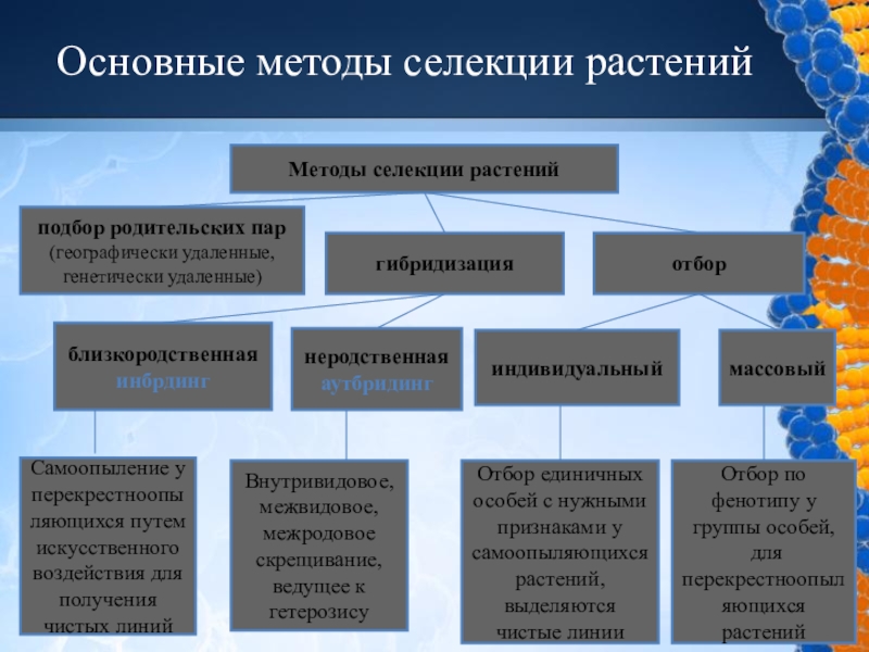 Отбор единичных особей с нужными признаками у самоопыляющихся растений, выделяются чистые линии