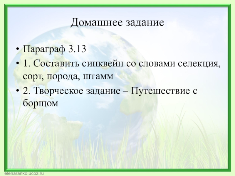 1. Составить синквейн со словами селекция, сорт, порода, штамм