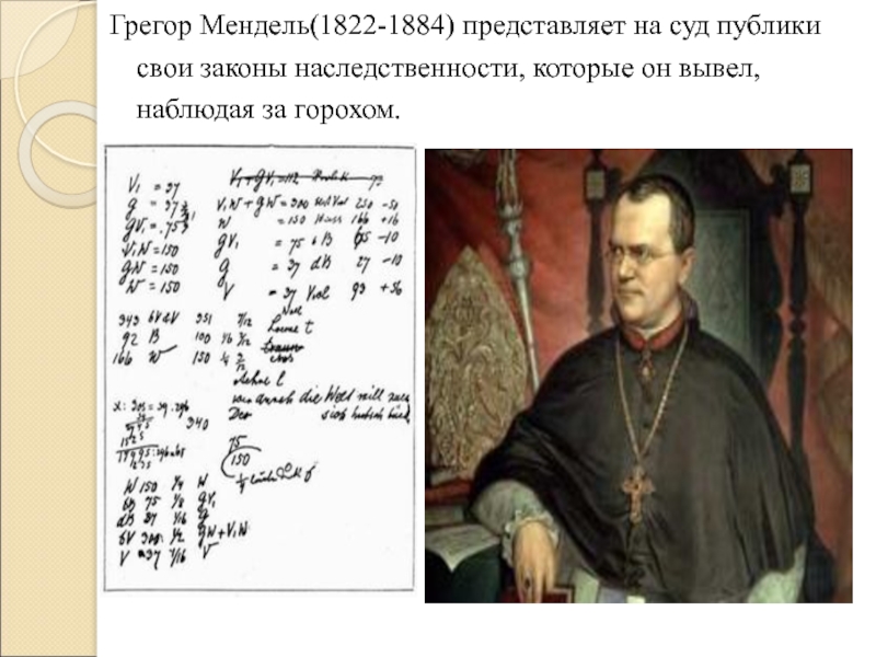 Слайд 6Грегор Мендель(1822-1884) представляет на суд публики свои законы наследственности, которые он