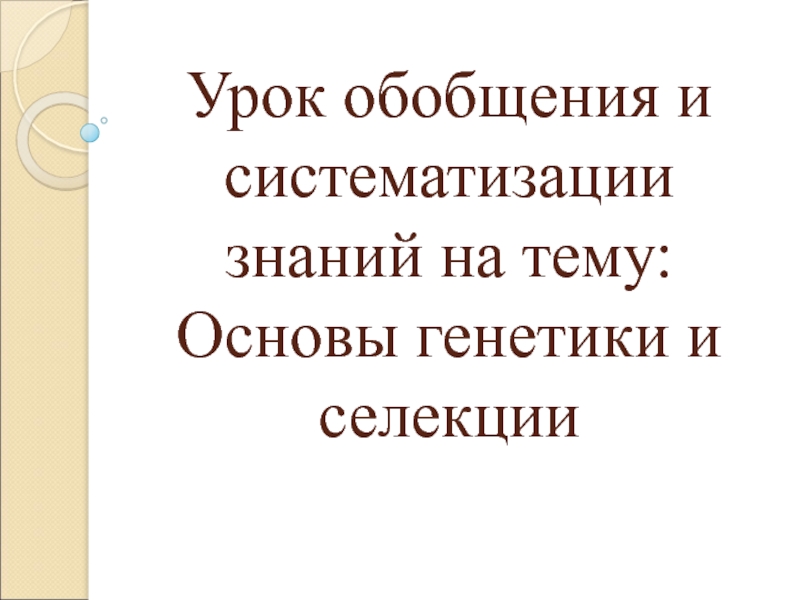 Слайд 1Урок обобщения и систематизации знаний на тему: Основы генетики и селекции