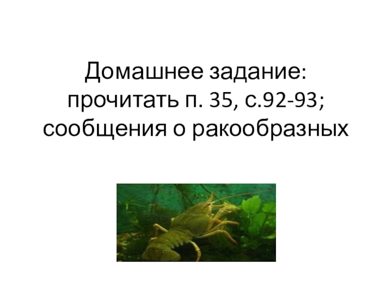 Слайд 29Домашнее задание: прочитать п. 35, с.92-93; сообщения о ракообразных