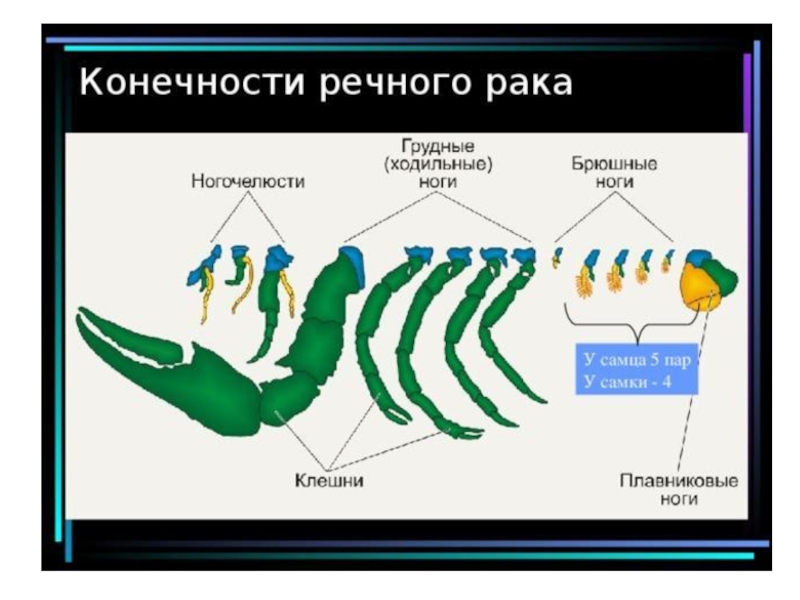 Слайд 15Дыхательная система речного рака