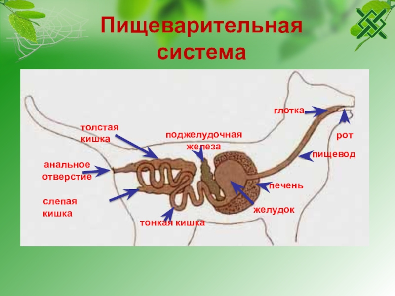Пищеварительная систематолстая кишкаподжелудочная железаглоткаротпищеводпеченьжелудоктонкая кишкаслепая кишкаанальное отверстие