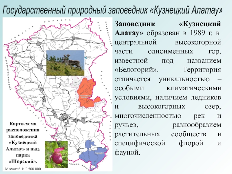 Картосхема расположения заповедника «Кузнецкий Алатау» и нац.парка «Шорский».