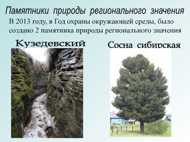 Памятники природы – уникальные, невосполнимые, ценные в экологическом, научном, культурном и эстетическом отношениях природные комплексы, а также объекты естественного и искусственного происхождения