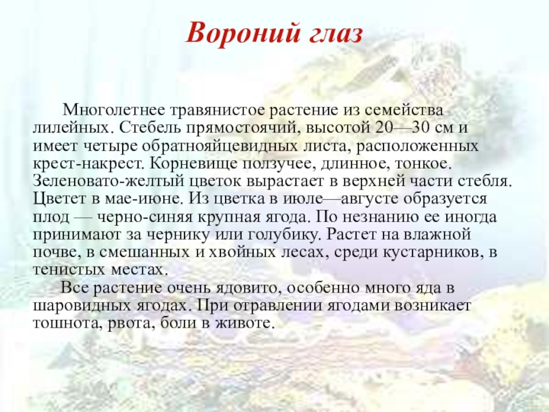 Слайд 8Вороний глаз