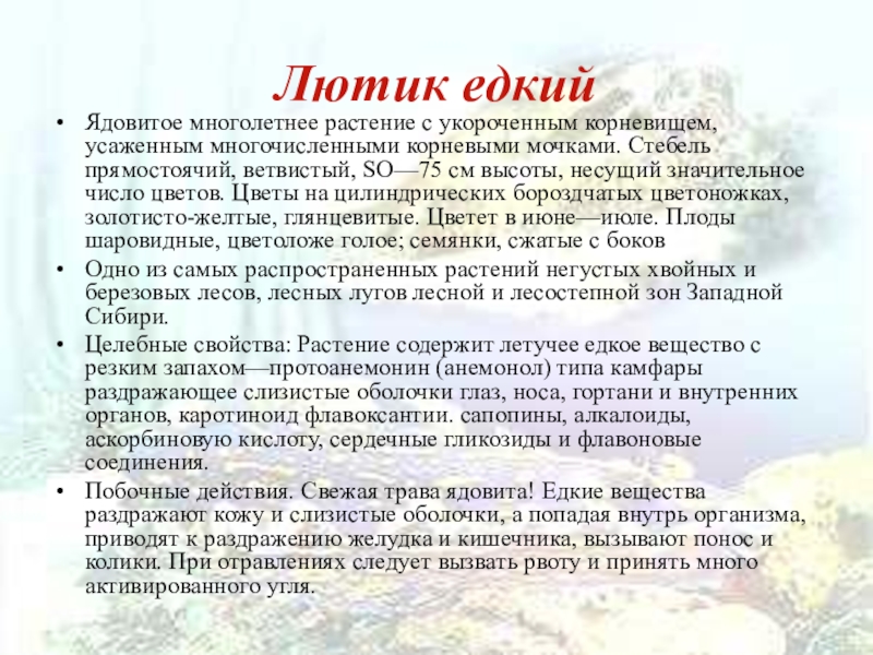 Слайд 14Лютик едкий