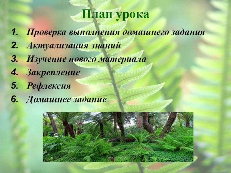 Урок по теме: «Отдел Папоротниковидные. Происхождение, особенности организации и жизненного цикла»   Выполнила
