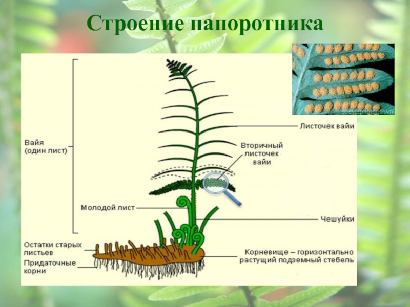 Презентация, доклад по биологии на тему отдел Папоротниковидные. Происхождение, особенности организации и жизненного цикла 7 класс