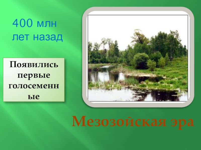 400 млн лет назадПоявились первые голосеменныеМезозойская эра