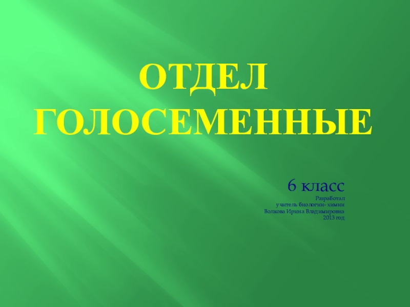 Отдел  Голосеменные6 классРазработалучитель биологии- химииВолкова Ирина Владимировна2013 год